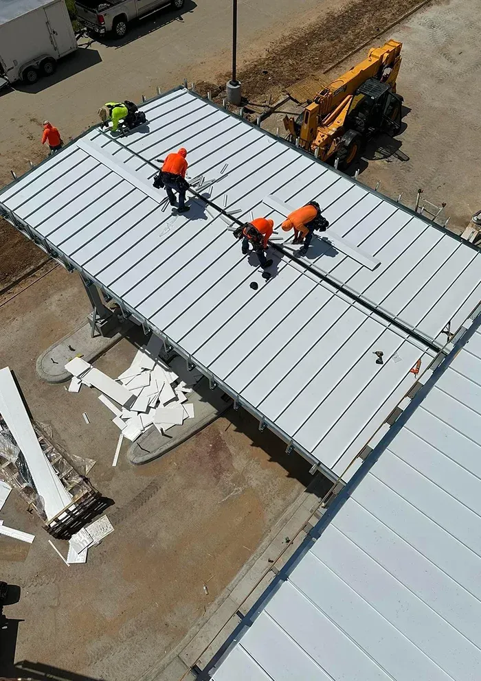 Our certified team handles tear-off, waterproofing, metal panel installation, and detailed finishing.